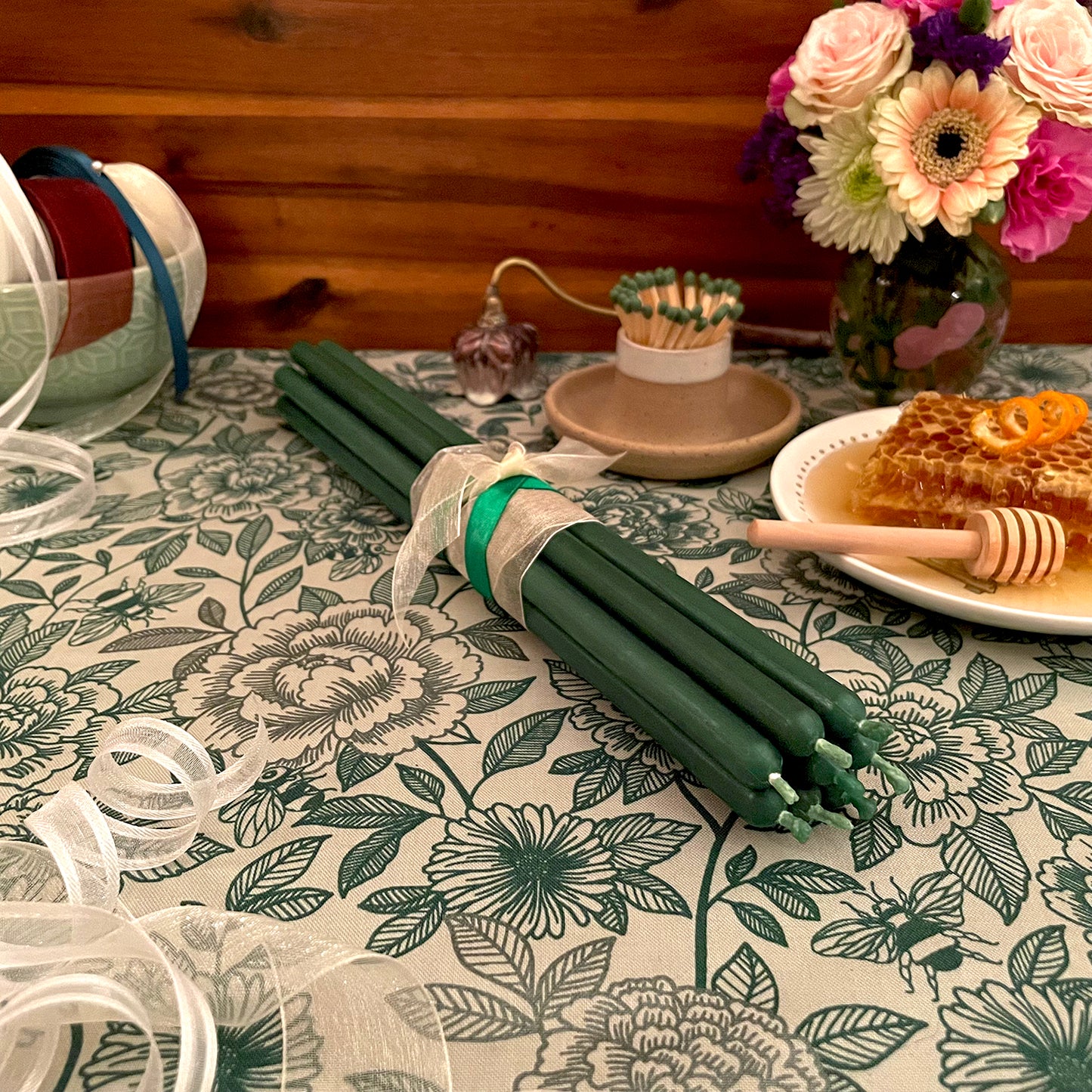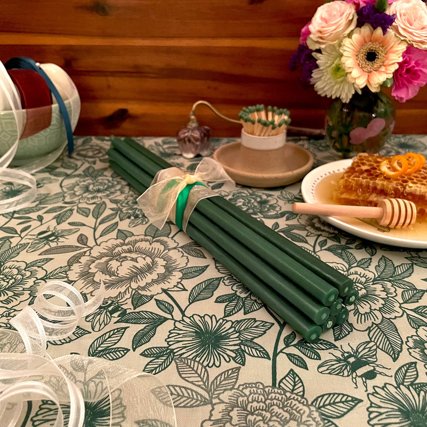 8 Forest Green Beeswax Tapers (Thin 10 in)
