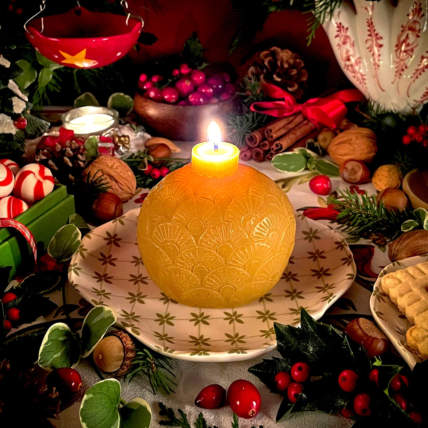 Capturing the enchantment of the Christmas holiday, our molded beeswax candles, with their pure golden hue, are crafted from 100% pure farm beeswax and feature pure cotton wicking. These candles serve as your secret to infusing festive warmth and joy into any home or gifting occasion!